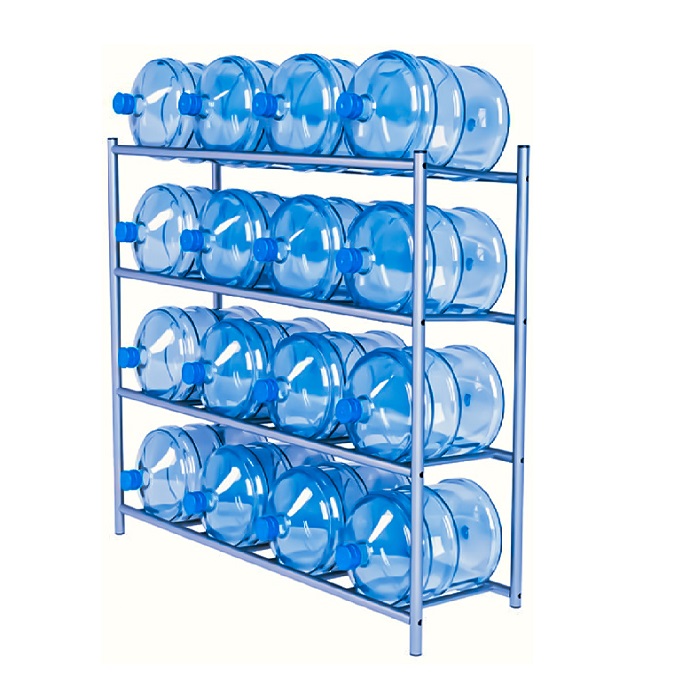 Длина направляющих и угол наклона полок специально подобраны для удобства размещения шестнадцати бутылей с питьевой водой 19 литров.