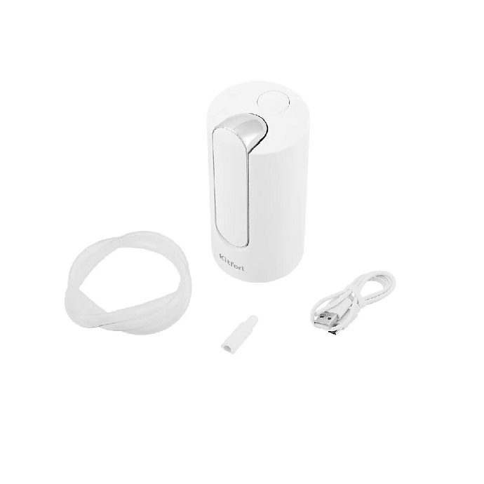 Подача воды работает по нажатию. Помпа включает либо отключает поток воды каждый раз, когда вы касаетесь кнопки. Фитинг на конце силиконового шланга имеет скошенные края. Это сделано для того, чтобы шланг не упирался в дно ёмкости и вода беспрепятственно попадала в шланг.