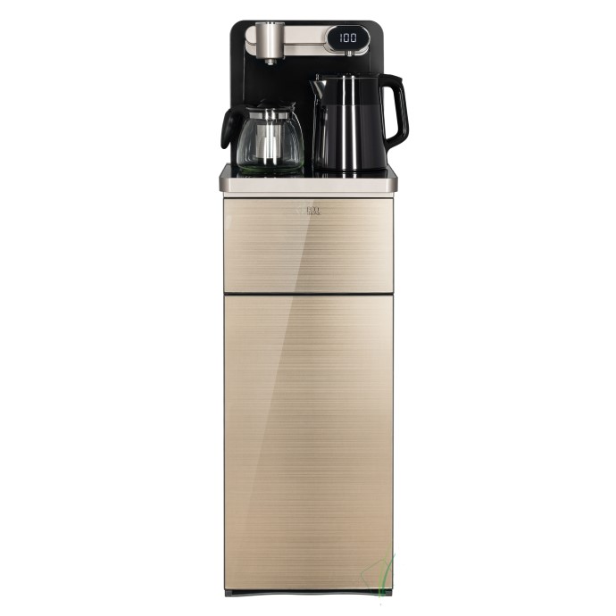 Тиабар Ecotronic TB40-LE gold — это напольный кулер с чайным столиком с электронным охлаждением. Нижняя загрузка бутыли. Два чайника — для кипячения и заварочный. Нагрев воды в чайнике до 100°С.