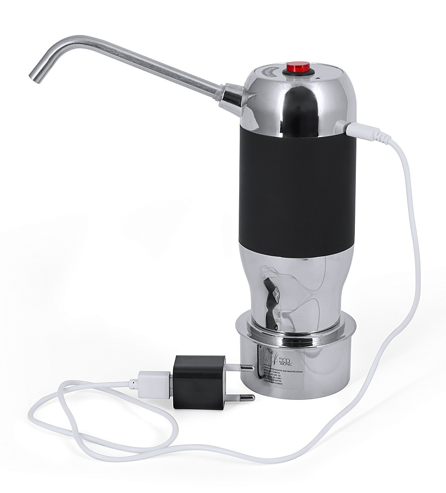 Перезаряжаемая аккумуляторная помпа для воды. В комплекте USB-адаптер. Может заряжаться через адаптер от сети или через USB-кабель от любого подходящего устройства. Простая установка на бутыль без снятия крышки. Лампочка индикации заряда. Чтобы налить воду, достаточно одного нажатия на кнопку. Гибкая трубка позволяет производить забор воды без остатка. Помпа изготовлена из безопасных материалов: пластик, нержавеющая сталь.